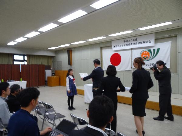 津市子ども会育成者連合会の定期総会の冒頭で、「さくらの写生」の表彰が ありました。 4月28日から5月14日までの展示期間が終わりましたので、子ども会の行 事の担当さんで展示を片付けを行いました。