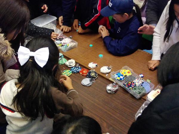 くるみぼたんも、お好みの布地で磁石にしたり、ヘアゴムにしたり…