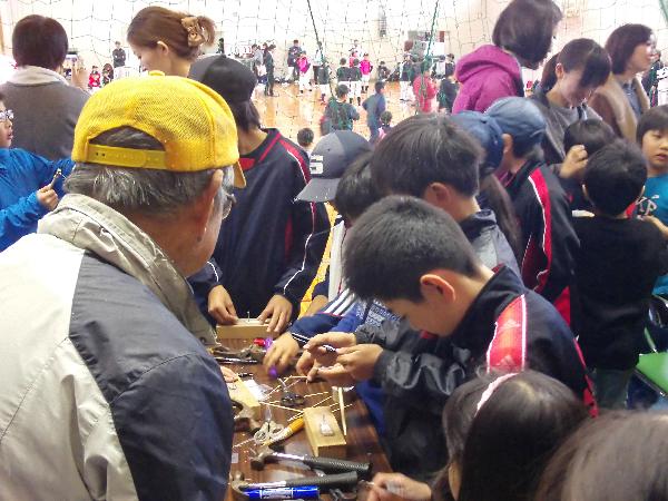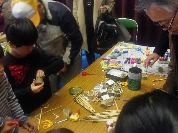竹細工は、竹トンボとぶんぶんゴマの制作を行いました。大盛況で一部材料がなくなってしまうほど。