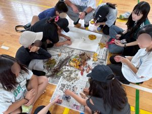 最後はネイチャーゲームで自然のものを使ったクラフト。各班素敵な作品ができました。